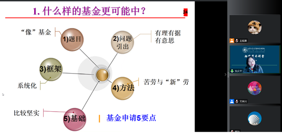 此外,朱教授还站在审稿人的关注视角,明确指出审稿人的关注点是什么,并点明基金申请的五要点,分别是题目要“像”基金、问题引出要有理有据有意思、框架要系统化、方法应用要既有苦劳也有“新”劳以及研究基础要坚实。
