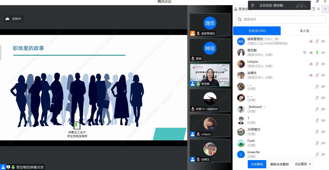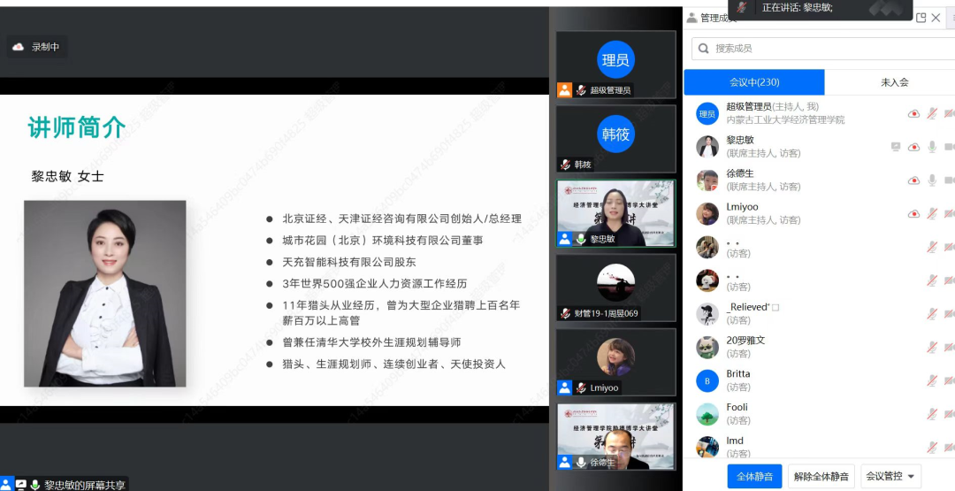 黎忠敏以《如何找到你的理想职业》为主题开展宣讲,结合实际案例讲述“以猎头视角如何来看理想化职业,何为职业金三角以及如何找到理想职业金三角,如何进行择业和择业前需要做的有关准备”等内容。与会人员就相关问题进行咨询和互动,纷纷表示受益匪浅。