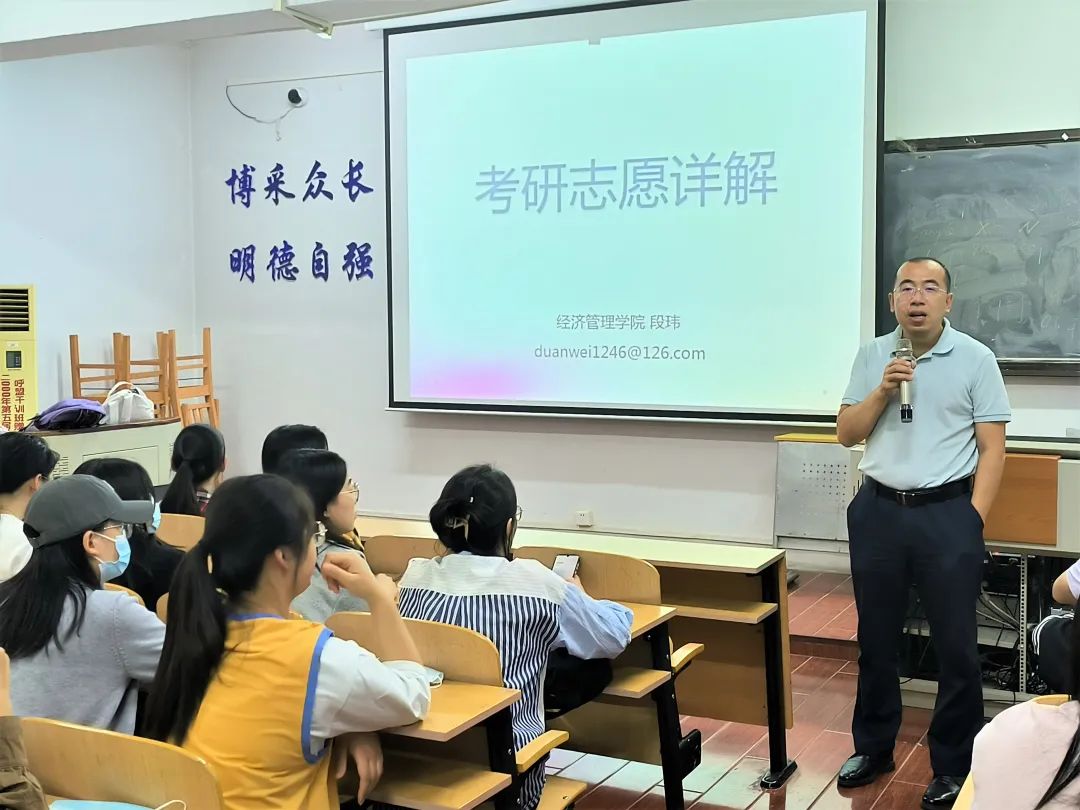 段玮为同学们讲解了考研志愿填报流程及注意事项,为大家分析了近年来考研录取形势。勉励同学们应将考研之路坚持到底,结合实际理性选择。