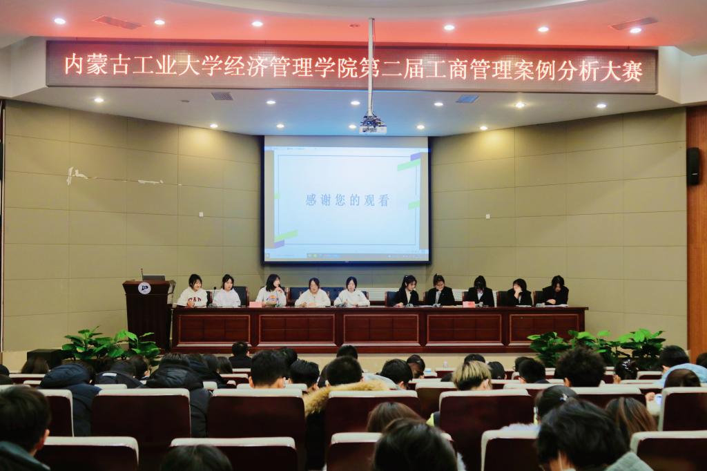 12月23日,伟德官方网站于图书馆报告厅举办第二届工商管理案例分析大赛。公司党委书记任慧,经理长青出席,副经理乔洪滨,工商管理系主任韩丽萍,工商管理系副主任、党支部书记张璐,MBA教育中心副主任段玮,团委副书记、团学办公室副主任贾国辉担任评委,各参赛队伍成员及各年级员工代表180人参加比赛。