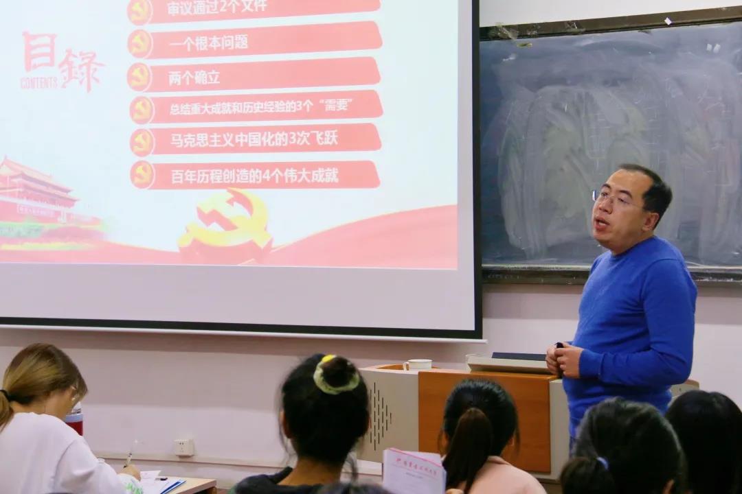 公司党委委员,行政党支部书记徐德生老师以“数览十九届六中全会”为主题开展党课。他重点解读了十九届六中全会部分内容,从“总结重大成就和历史经验的三个需要”、“马克思主义中国化的三次飞跃”、“中国共产党百年历程创造的四个伟大成就”等方面详细展开讲解。他指出,入党积极分子要切实端正入党动机,不断更新知识水平,通过系列党课学习不断促进同学们在学、思、践、悟中成长,以实际行动践行使命担当,为实现伟大中国梦努力奋斗。