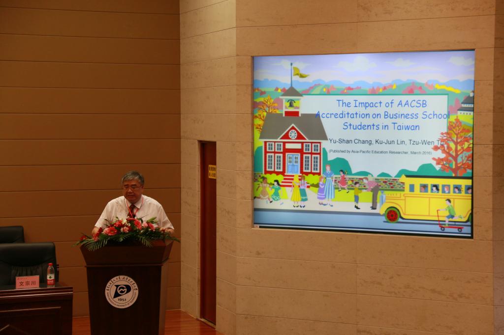 在本次论坛上,两岸学者深入交流和分享区域经济与管理创新以及相关领域的最新研究成果,涵盖台湾公司治理发展的近况、企业家战略视域下的情境战略理论建构与实施方法、财务比率之价值攸关性:财报编制主体变动之影响、内蒙古经济增长:之谜、之殇、之美、The impact of AACSB accreditation on business school students in Taiwan、税收分配伦理、社会福利命题与中国税制优化研究、内蒙古创新驱动的难点与对策等诸多议题。在分会场,四校师生分别作了两场学术论文报告,并就论文选题、写作技巧及写作方法进行了深入探讨与交流。