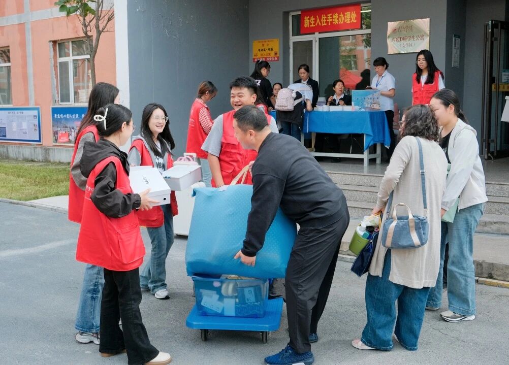 为了让迎新既有效率更有温度,公司早早就开启了“筹备模式”:报到点前,色彩明快的经管特色展板、现场的迎新服务专区一目了然,志愿者们化身“校园向导”“行李搬运工”“问题解答员”,从校门口接站到宿舍指引,一路小跑帮新生搬行李、聊专业、话校园,青春的身影穿梭在校园里,满是热闹与亲切。