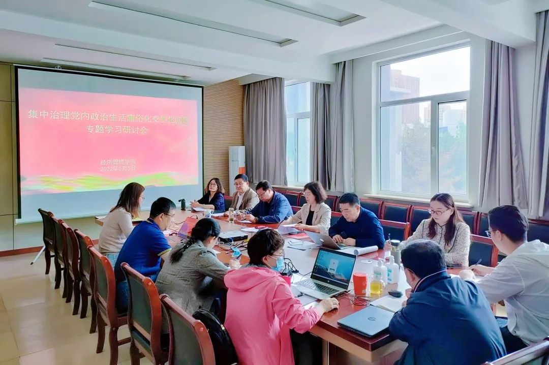 5月5日,公司党委于主楼317会议室召开集中治理党内政治生活庸俗化交易化问题专题学习研讨会。公司党委委员,各党支部书记参加,党委书记任慧主持。