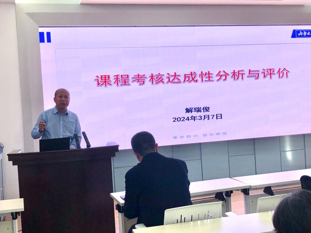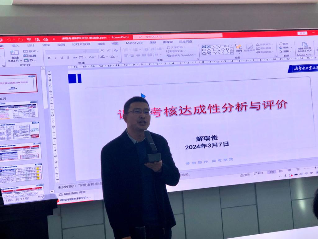 结合本科审核评估工作和公司教发中心工作要求,针对公司本科教学资料整理存在的问题,3月7日公司邀请人事处副处长解瑞俊老师在主楼329进行“课程考核达成性分析与评价”培训交流,全院教师参加,吉格迪副经理主持培训会。