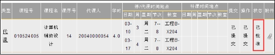 点击【提交】超链接,进入逐级审批阶段,如下图所示。教师提交调课申请后,一定要及时告知系主任进行审批。