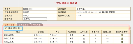 系统会检查考试和上课冲突,无冲突会进入安排考试界面。有冲突显示冲突的课程或考试列表,删除已安排的时间后,返回上一步,按步骤二另选考试时间。