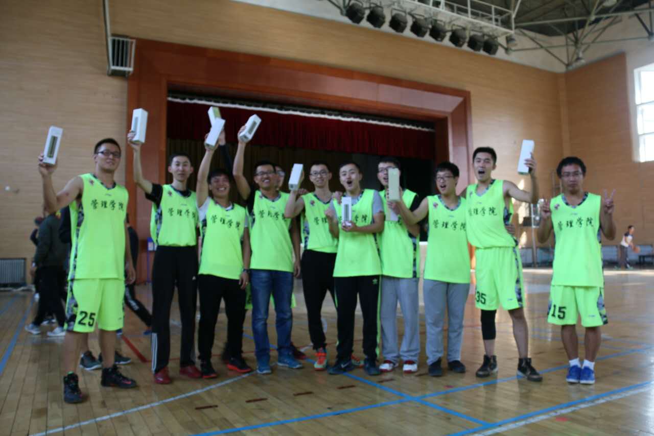 经过20多天的比赛,2016级“新生杯”篮球赛的半决赛和决赛于10月15日、16日在文体馆进行。管理公司代表队由施必翔、张树山、刘毅铭、杨朝晖、张恒、金禹辰、郭增辉、裴伟、石璐明、张磊、刘项组成,最终管理公司历史性的闯入决赛获得冠军,创历史最好成绩。