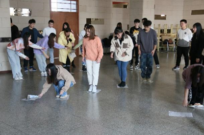 心理委员徐开、张舒倪和心理素质拓展部的同学们一起组织了此次活动,拓展部部长刘祥毅向大家介绍了活动具体流程以及比赛规则。活动项目丰富多样,有五人四足、“无敌风火轮”、搭桥过河、同舟共济以及气球传纸杯等团体活动。50名同学分成四组以后,采取小组积分制,每轮游戏的得分累计后,分数最高的小组将获得团体一等奖。