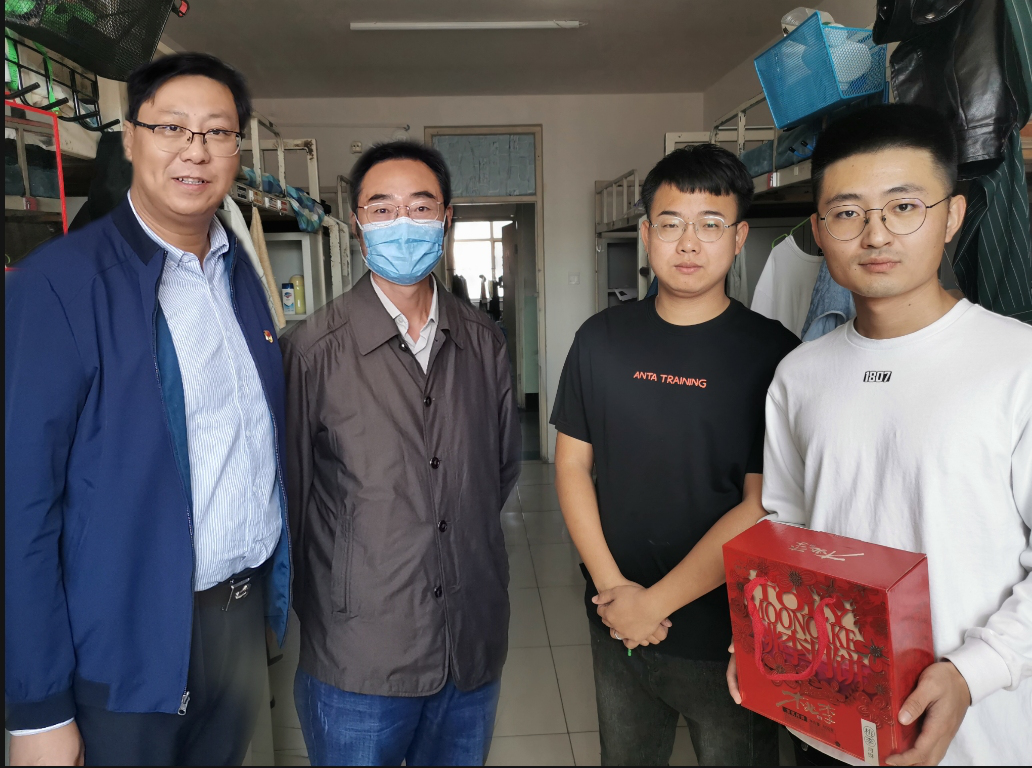 10月1日上午,伟德官网党委书记任慧老师、经理长青老师、党委副书记副经理冀强老师、副经理郝晓燕老师、研究生辅导员侯剑老师、团学办副主任李雪老师等前往伟德官方网站宿舍对研一新生进行慰问。冀经理和郝经理亲手将一份份中秋月饼礼盒送到新生学子们手中,亲切询问各位同学在校生活情况,一声声亲人般的关切问候拉近了彼此间的距离,让来自天南海北的学子们倍感温馨,现场暖意融融,充满欢声笑语。