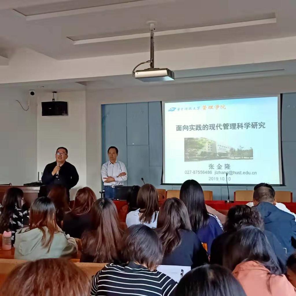 10月10日下午3:30,伟德官方网站在主楼329举行了主题为“面向实践的现代管理科学研究”的学术讲座,该讲座是由张金隆教授主讲,长青经理主持,伟德官方网站2018级全体研究生及数名教师参加。