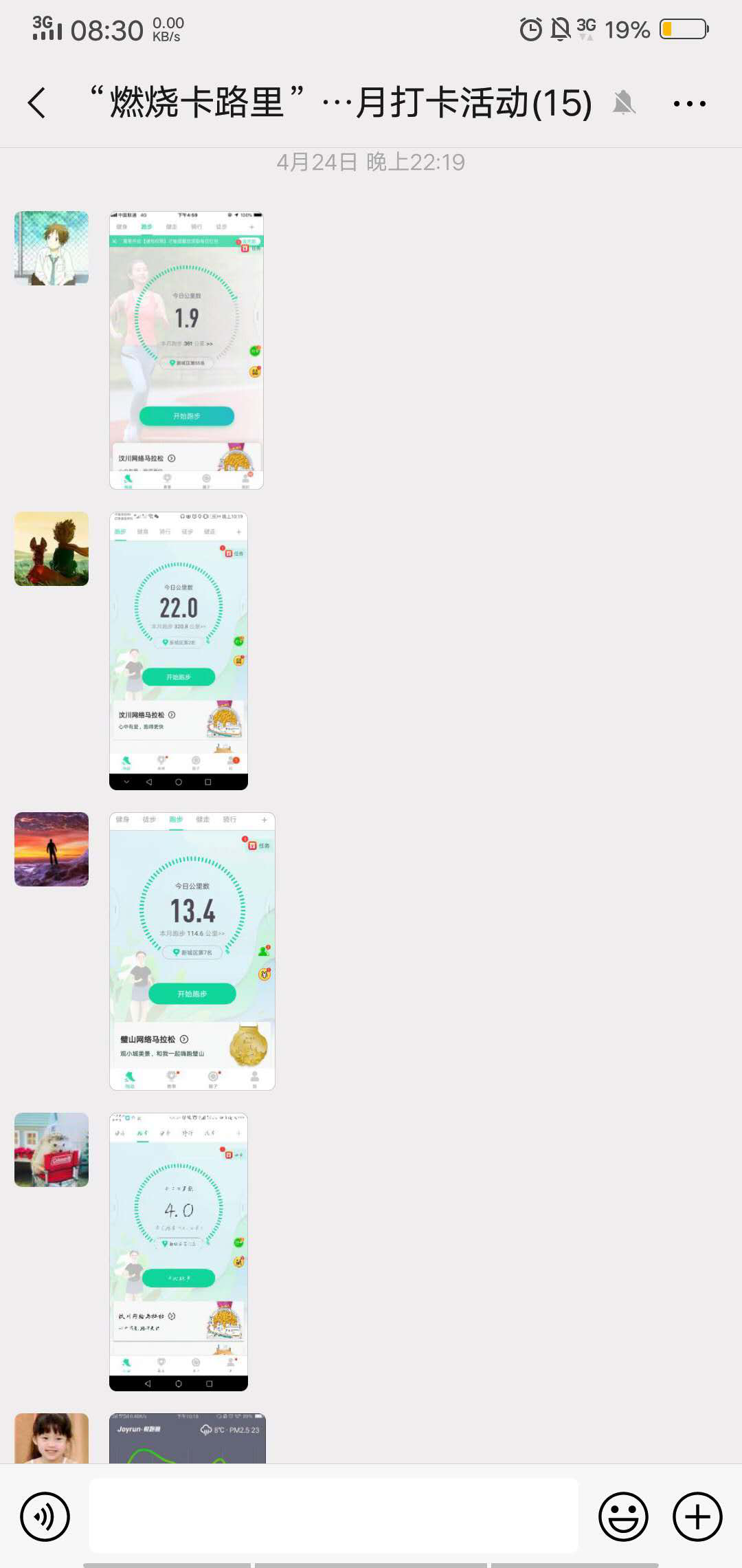 本次活动为期一个月,活动的具体规则是同学们需要下载-悦动圈APP ,每天超过一公里即为成功,跑步时间自由,并且参加过夜光活动的同学,都累计打卡3次;每天运动完大约晚上10点把截图发到群里。在一个月结束之后,公布打卡名次,最后颁发奖品。经过同学们的踊跃参与,一个月的打卡活动结束,现将获奖名单公布: