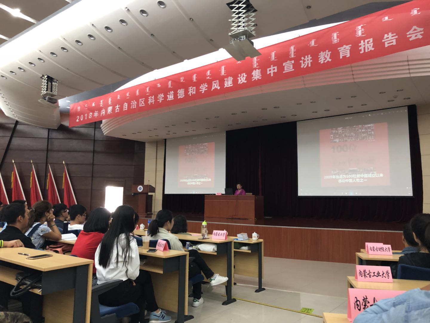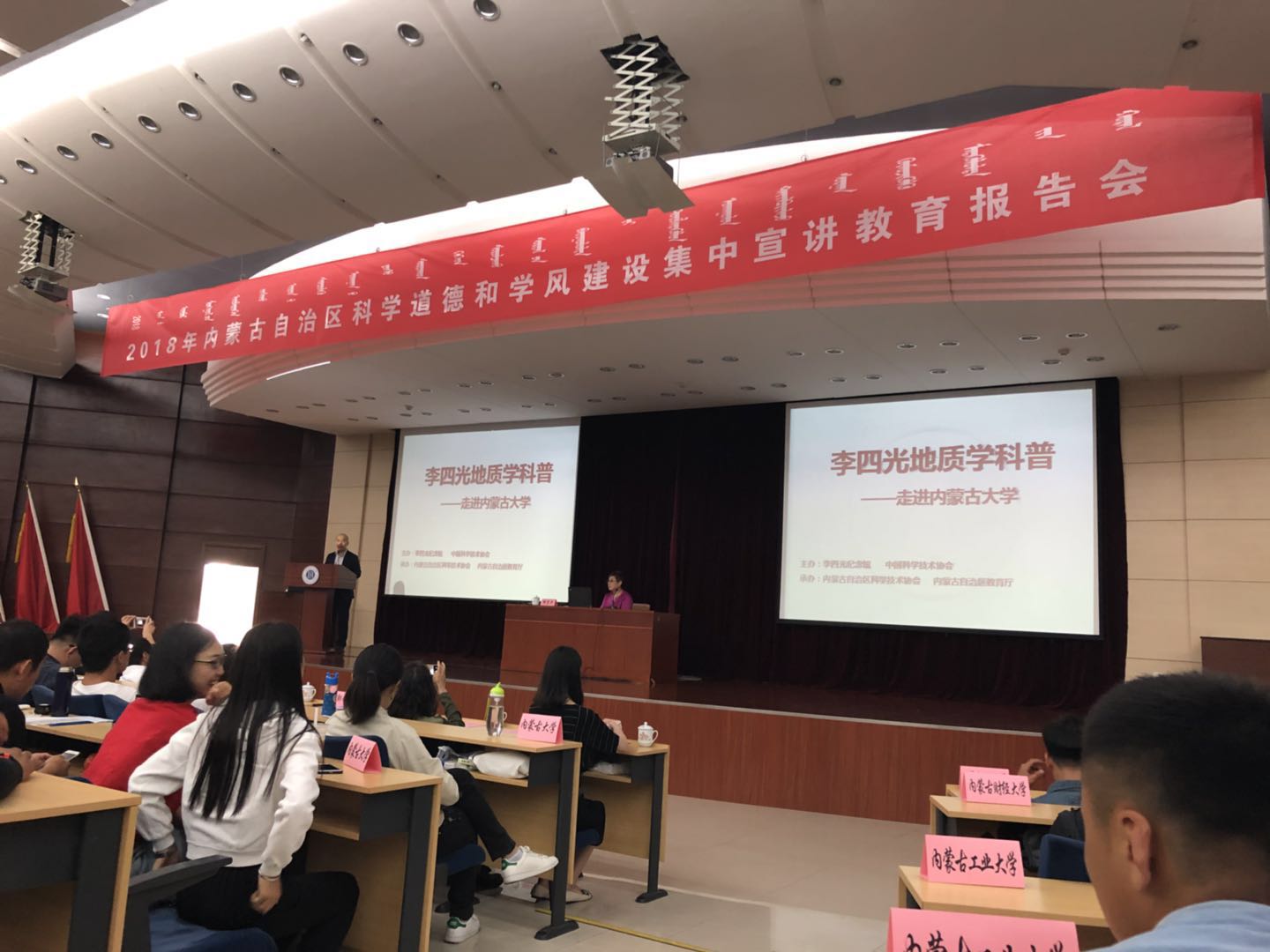 2018年9月5日上午十点,伟德官方网站四名入党积极分子代表受邀参加了《2018年内蒙古自治区科学道德和学风建设集中宣讲报告会》,此次报告会主讲人是李四光的外孙女——邹宗平女士。