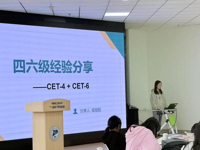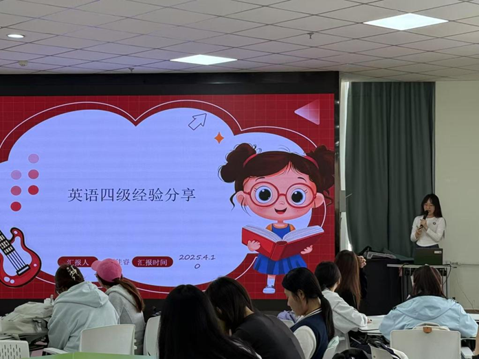 随后,多位优秀学长学姐依次分享备考策略。首先,来自公共22-2的刘佳睿同学分享了词汇积累的方法,她指出“词汇是英语学习的基石,一定要坚持每天背诵单词”。其次,物流23-1的叶翔翎同学则分享了听力备考技巧。她表示,平时可以多听一些英文广播,培养英语语感。接着,资环22-2的马润雨同学分享了写作备考经验。她建议同学们平时多积累一些优秀的写作模板和常用句式并且要注重写作思路的训练。随后,24级研究生张有贤同学针对翻译部分给出了实用的建议。她认为,要提升翻译能力,要积累一定量的专业词汇和固定表达。23级物流专业的研究生齐龙祥同学分享了阅读备考技巧。最后,24级研究生梁旭阳同学分享了自己的综合备考经验。她建议同学们制定详细的备考计划,定期进行模拟考试,提前适应考试节奏。