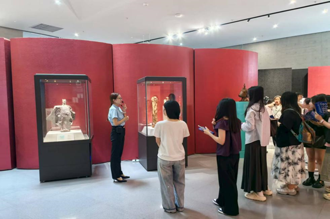 参观过程中,同学们凝神观赏、积极探讨、深入提问,沉浸于雕塑艺术的文化氛围。通过专业讲解与近距离观察,大家不仅了解了创作背后的故事,更深刻体会到民族艺术连接历史与未来、传统与创新的独特价值与桥梁作用。