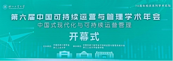 第六届中国可持续运营与管理学术会议是由中国系统工程学会和浙江工业大学主办、中国系统工程学会可持续运营与管理系统分会和浙江工业大学管理公司承办的可持续运营与管理领域高端学术研讨会。会议主题是“中国式现代化与可持续运营管理”,与会专家代表共同探讨了数智时代中国式现代化伟大实践与可持续运营管理前沿问题与发展方向,赋能绿色新兴产业与传统产业绿色化数智化升级。