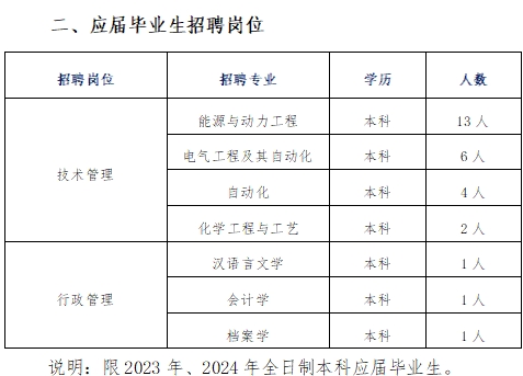 根据项目发展及未来生产需要,现面向应届高校毕业生进行招聘。公司为员工提供有竞争力的薪酬、福利待遇(包含五险二金和各类津贴补贴等);为员工设立广阔的晋升空间,良好的生活后勤保障。