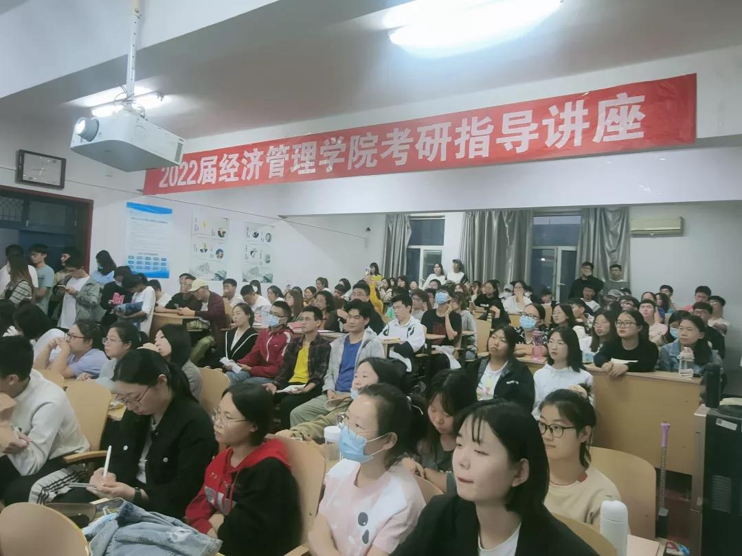 段玮向同学们详细介绍了考研流程,并醒同学们应提前阅读志愿公司招生简章,选择合理的目标。同时,他根据往年的报考情况数据,分析了性别、少数民族和专业方向对报考的倾向和优势。教室中座无虚席,师生互动频繁,段玮耐心的解答同学们的各类问题。