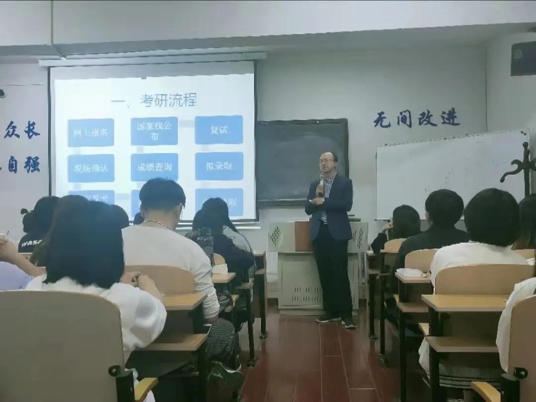 为帮助应届毕业生了解考研流程,合理准确进行考研报考,伟德官方网站于9月22日晚在主楼210教室举办考研指导讲座。段玮老师主讲,部分同学参加。
