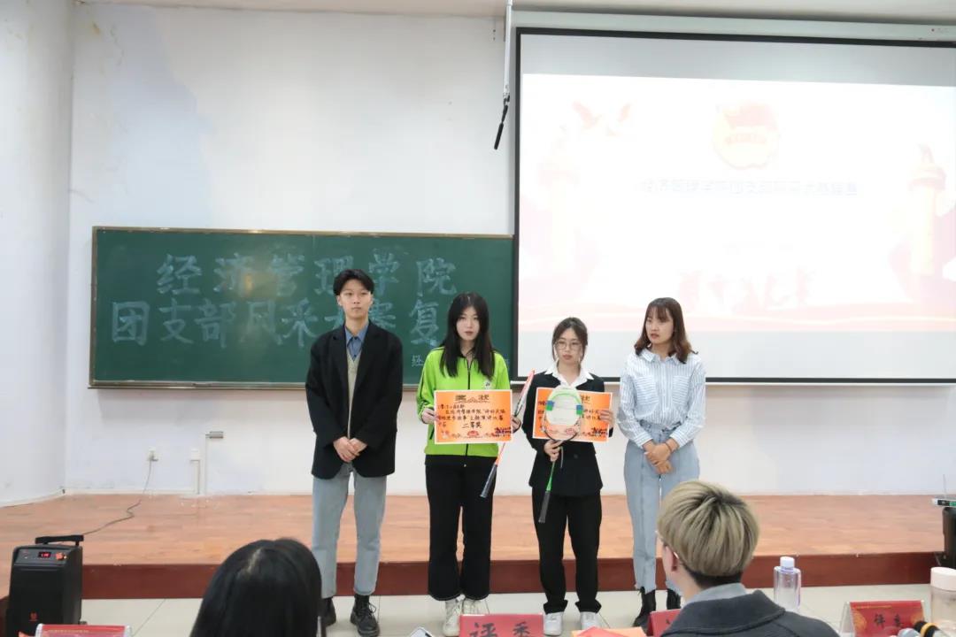参赛支部围绕思想建设、学风建设等方面展示支部内的蓬勃活力,通过视频展示、PPT讲解、诗歌朗诵、舞蹈表演、歌曲演唱以及情景剧表演等多种方式展现各支部的独特风采。展示过后,评委纷纷对各参赛队伍进行点评,在肯定各团支部代表精彩表现的同时,也对各团支部的风采展示提出了建议。经过激烈的比拼,金融19-1团支部在比赛中脱颖而出,赢得了本次大赛一等奖。工管19-2,信管19-2团支部荣获二等奖,财管19-1,财管19-2,工管20-1团支部荣获三等奖。