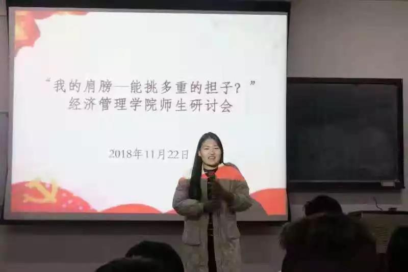 贾国辉结合自身经历、以实际例子分别从学习、工作、生活等方面向大家解释了他对“肩膀”、“担子”的理解,让同学们明白要不断提高认识,增强学习和工作的紧迫感、使命感。各位同学也结合自身的学习、工作情况等发言,纷纷表示要在日后的生活中,多向他人学习、多与父母沟通,合理树立目标、脚踏实地执行。