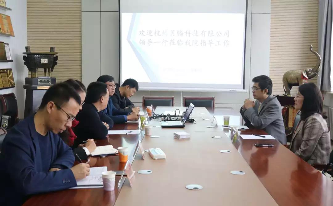 10月14日,杭州贝腾科技有限公司董事长黄林、北方区总经理汪海霞等到公司就共同推动创新创业教育工作进行了调研交流。公司经理长青,党委副书记、副经理冀强,团学办公室负责人等在公司317会议室进行了深入交流。
