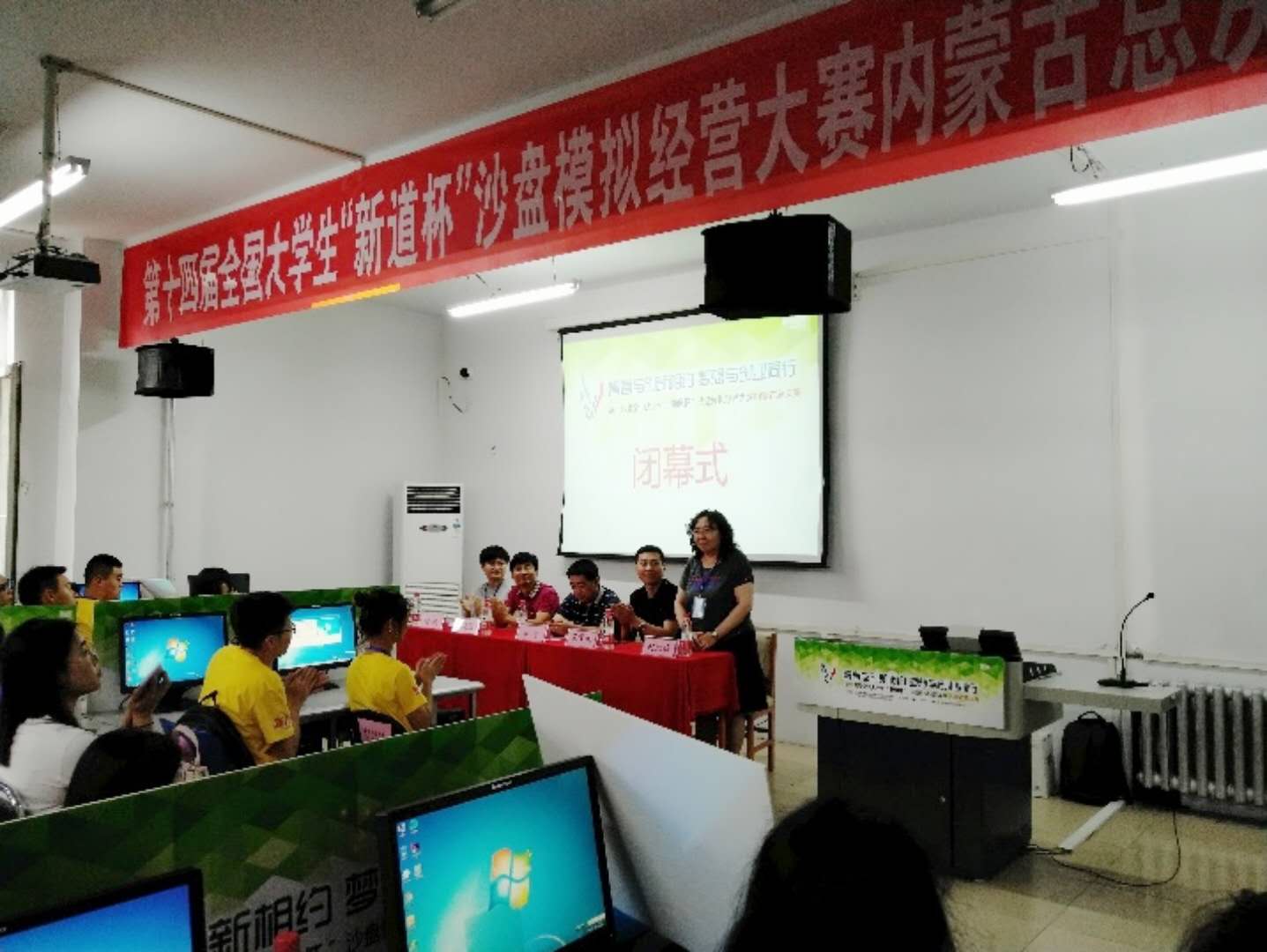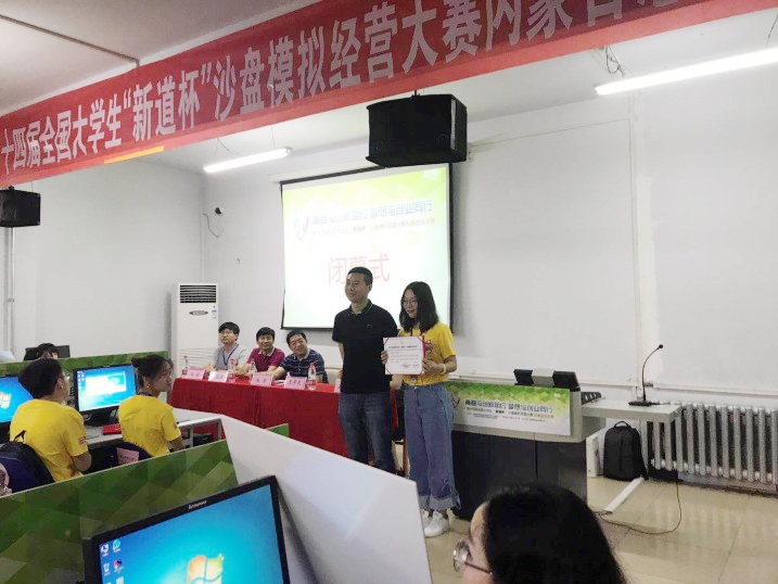 由高等公司国家级实验教学示范中心联席会、中国职业技术教育学会商科专业委员会主办、伟德官方网站承办、新道科技股份有限公司技术支持的第十四届全国老员工“新道杯”创新创业沙盘模拟经营大赛内蒙古总决赛于6月23日圆满落幕。新道科技股份有限公司内蒙古省区总经理王学民,新道云与教育服务BG约创产品经理刘超,伟德官方网站经理长青,工商系教授赵红梅,教学实验中心主任王建国出席大赛闭幕式并为获奖队颁奖。经过激烈的角逐,内蒙古农业大学代表队获得本科组一等奖,伟德代表队获得本科组三等奖;内蒙古化工职业公司获得高职组一等奖。