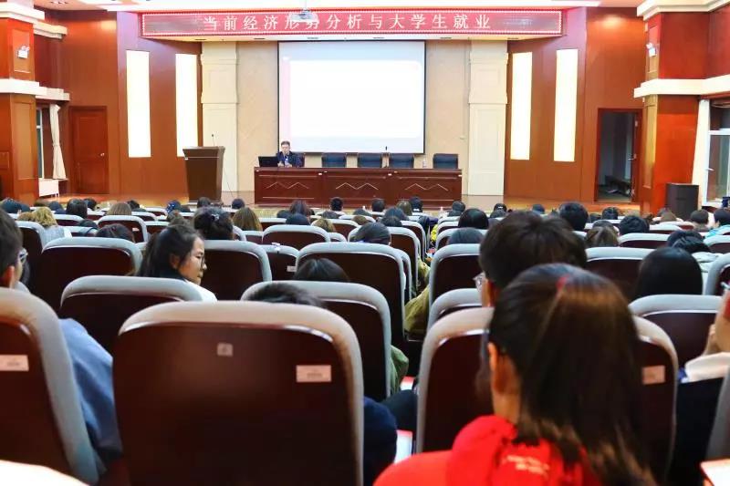第一讲由郗虎庆主讲,以《当前经济形势分析与老员工就业》为主题。他结合多年来研究中的深刻感悟,运用通俗易懂的语言和生动的具体事例,从中国经济形势、内蒙古经济形势和员工关心的一些问题等方面进行深入讲解。既体现了时代特色,又回应了同学们的关切。告诉同学们既要“心中有数”又要“脚下有路”,“结合自身实际情况明确未来发展目标,做好自己就是超越别人”。讲座的视野开阔、 思想前瞻、站位很高,知识专业,内涵也非常丰富, 具有很强的理论性和指导性, 对广大同学更好的理解和把握创新创业提供了帮助和启迪。