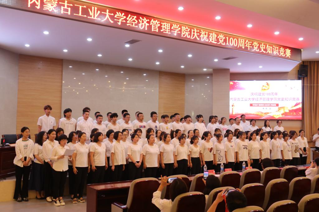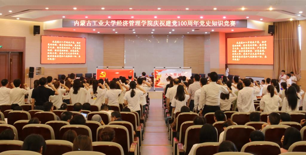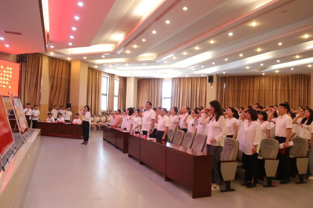 竞赛开始前,师生合唱团演唱建党百年主题曲《少年》,公司党委书记任慧带领全体党员重温入党誓词。