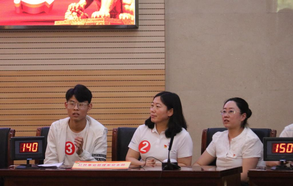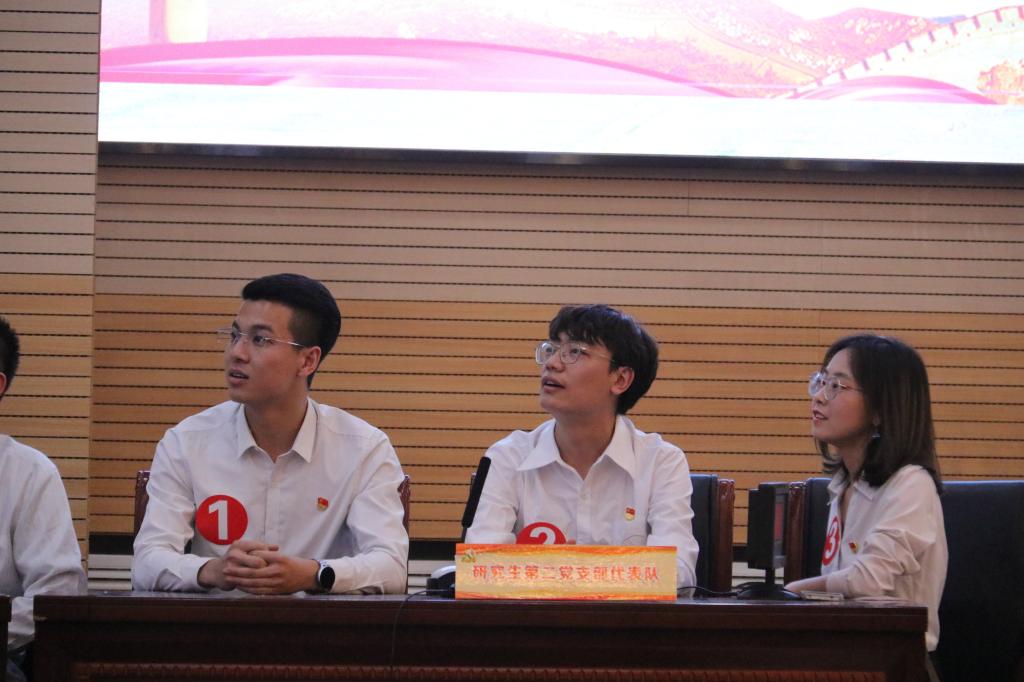 经过初赛选拔,经济系党支部、管工与公共员工联合党支部等6支代表队进入决赛。决赛分为“单兵突击”“团队作战”“抢占高地”“背水一战”“狭路相逢”五个环节,通过必答、抢答、计时、风险等多种题型,结合音频、图片等多种形式,考察选手对党史知识的掌握和理解程度。选手们不畏挑战的精神、沉着冷静的赛风以及对党史知识的精准把握,赢得了观众的阵阵掌声。