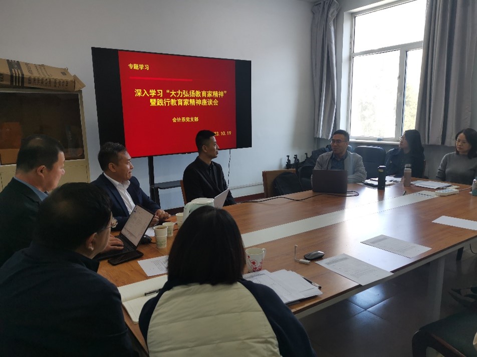 10月19日上午,会计系党支部于主楼323A召开“大力弘扬教育家精神”座谈会,支部全体教师参加学习研讨。