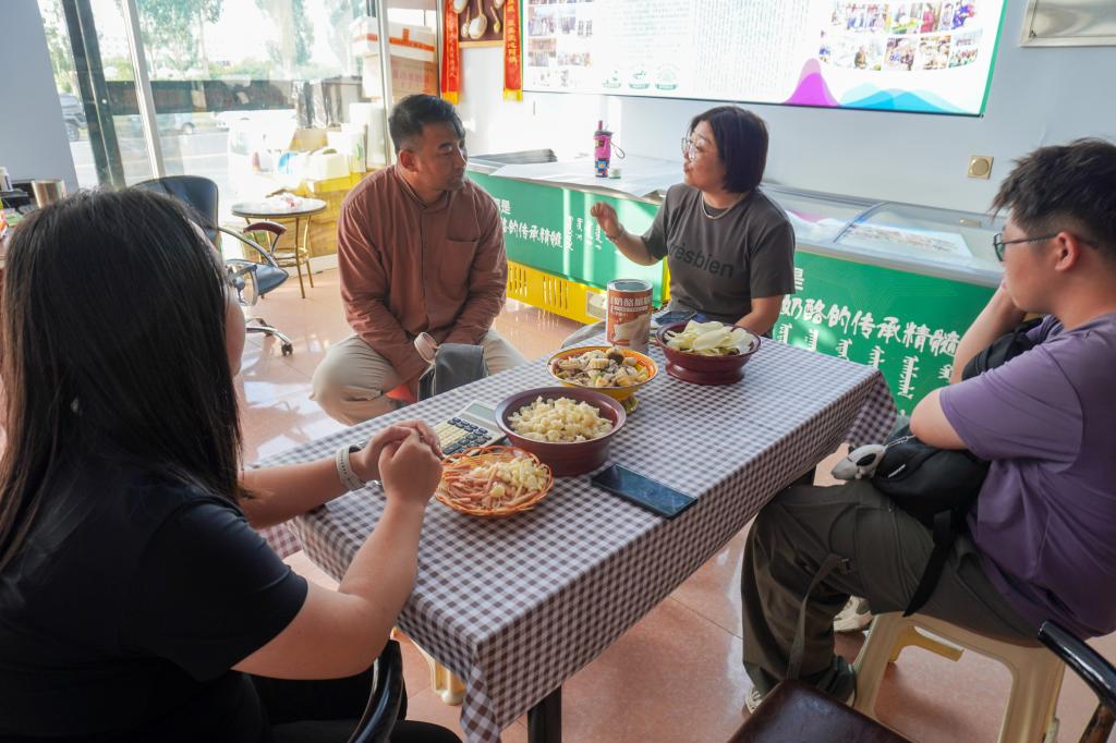 团队深入正蓝旗,拜访国家级非遗"察干伊德"技艺传承人陶高老师,实地学习传统奶酪制作工艺。在长虹乳制品厂等企业的调研中,同学们见证了传统工艺与现代技术融合、助力牧民增收致富。