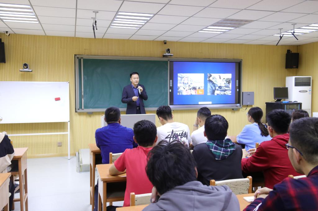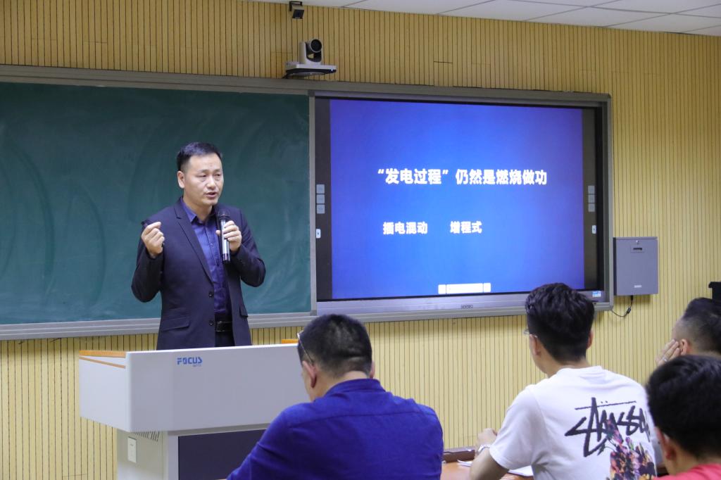 张峰以“汽车新能源与智能化”为主题,围绕“纯电动”是不是“新能源”?,“控制系统”和“信息系统”,“新能源”+“智能化”=智能汽车和“智能汽车”取代 “传统汽车”四方面,以诙谐幽默的语言,深入浅出地开展精彩演讲。讲座中,同学们就相关问题纷纷进行沟通和交流。